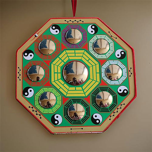 The Bagua Mirror is a powerful Feng Shui tool used to deflect negative energy (Sha Chi) from the surrounding environment. Often placed outside homes, offices, or shops, it protects the premises from harmful influences and brings balance and protection.
